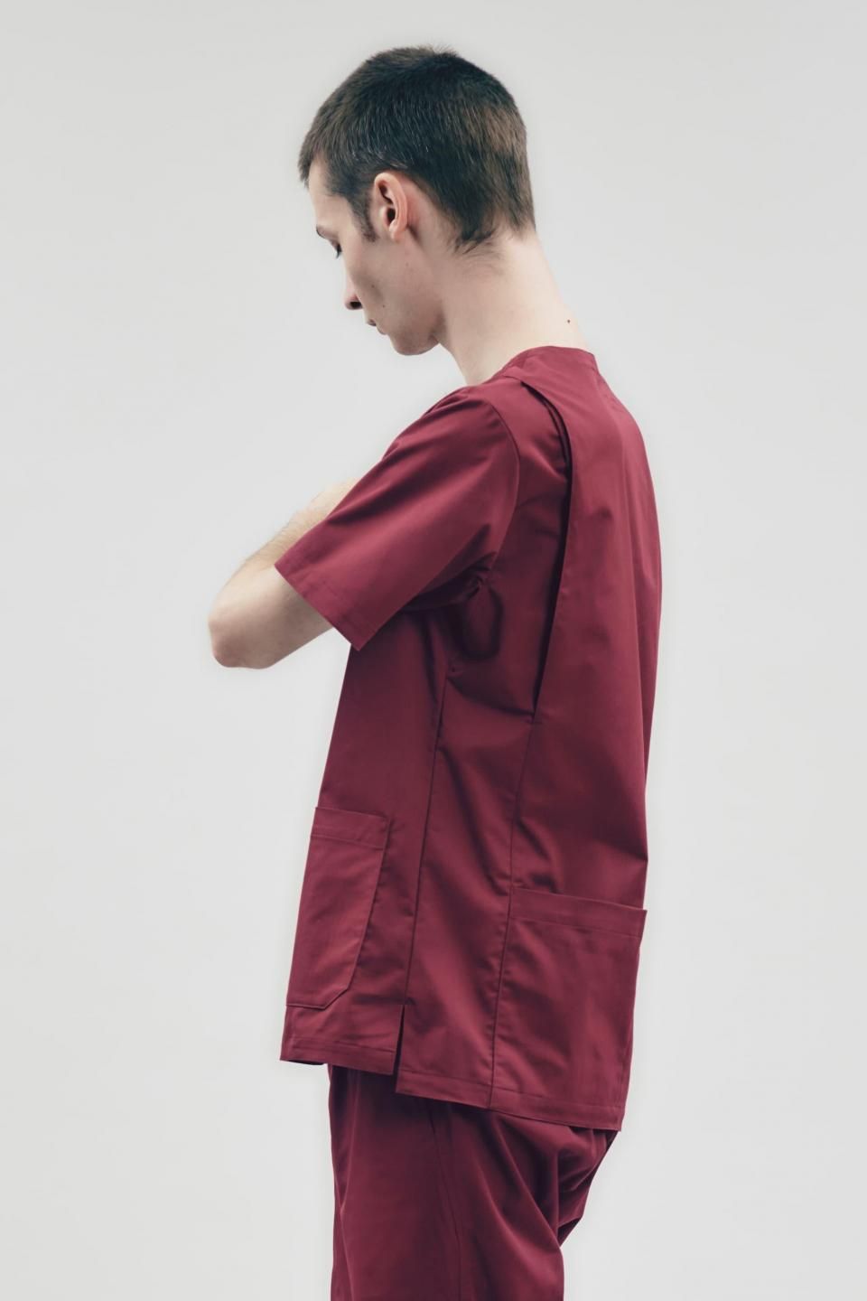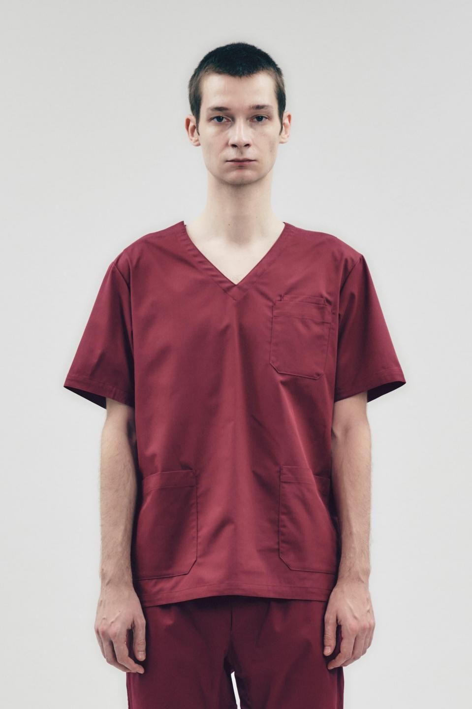 3Dアクションスクラブトップ ボルドー MEN