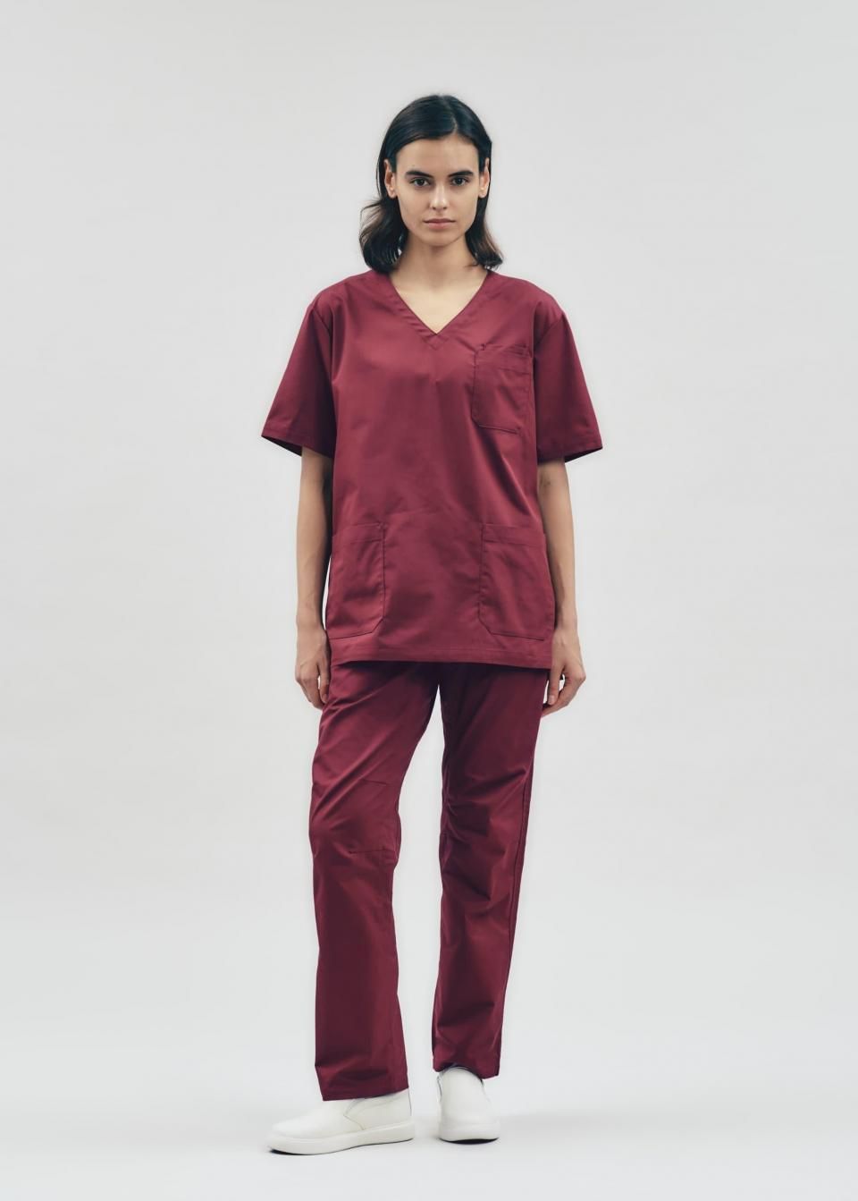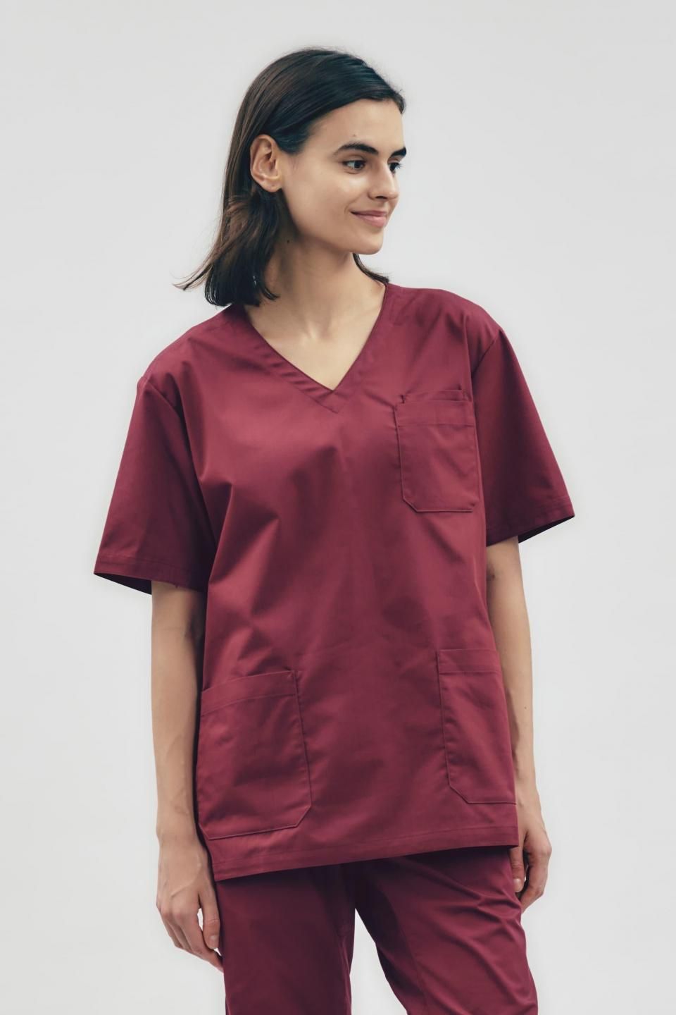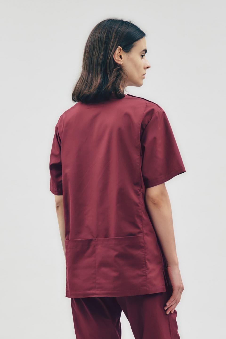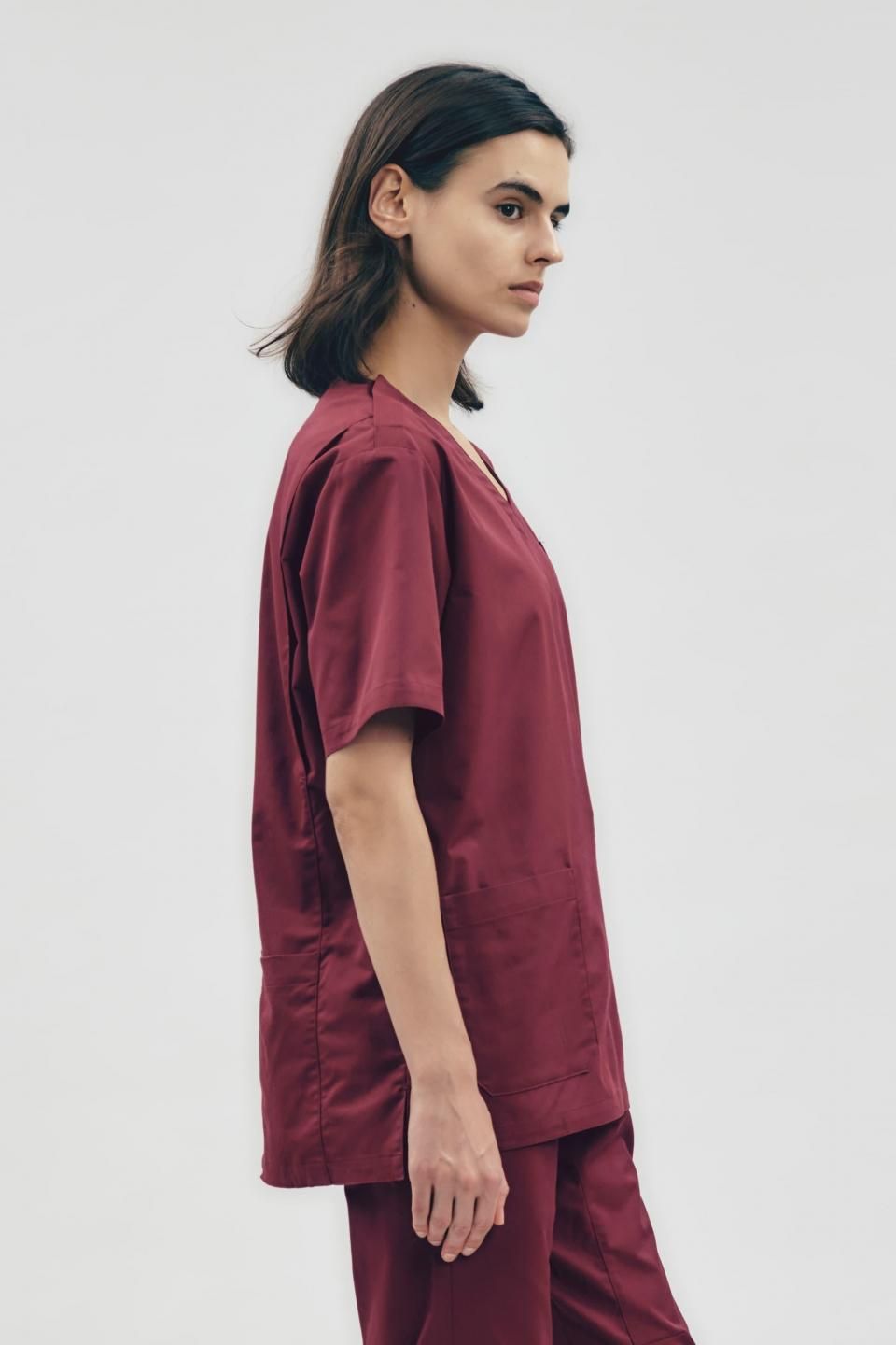 3Dアクションスクラブトップ ボルドー WOMEN