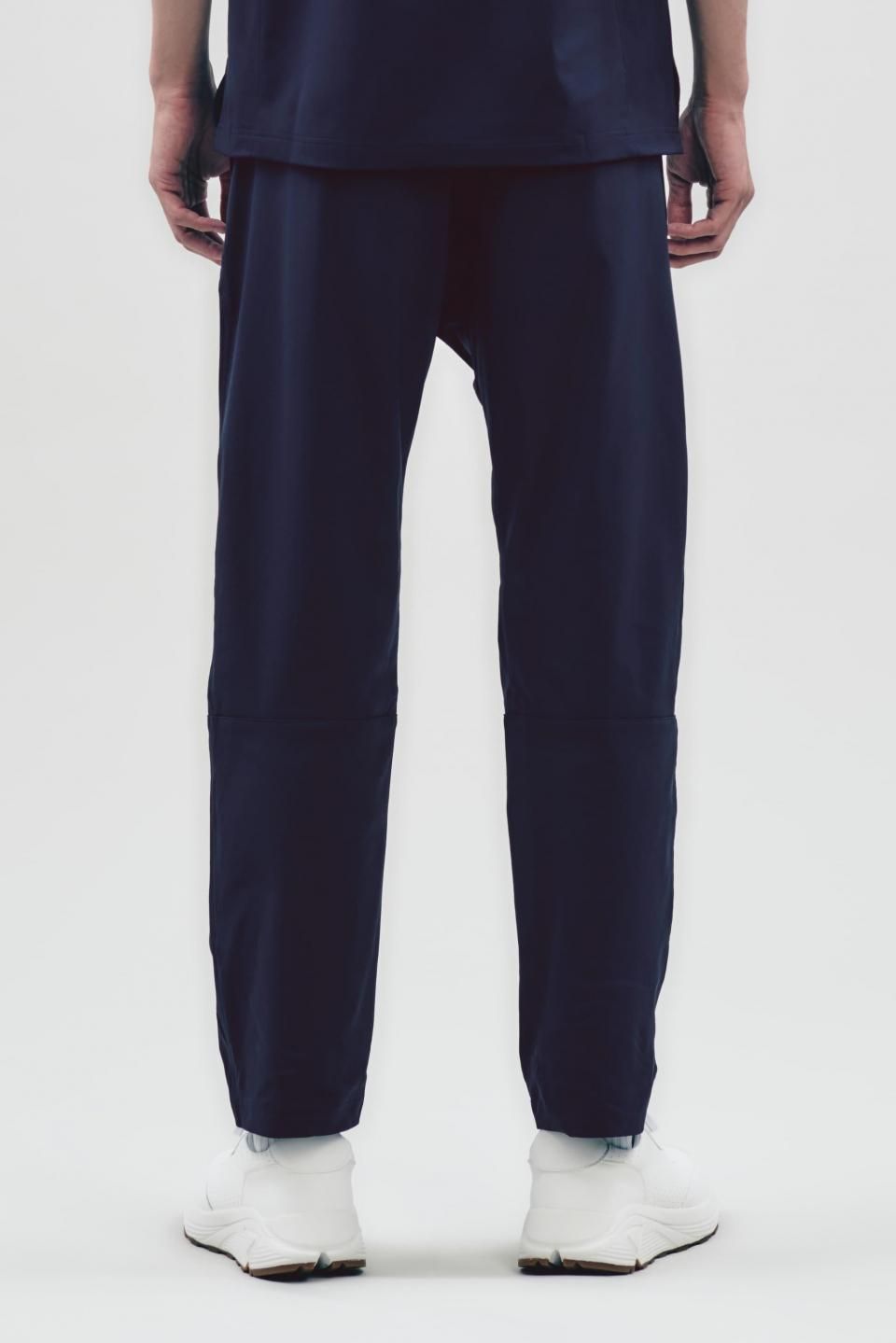 ヒップから太ももにかけて適度なゆとりを持たせ履き心地を良くしながらも膝下からテーパードがかかりスッキリとしたシルエットに。パンツの着丈もテーパードのデザインに合わせて少し短めにしています。