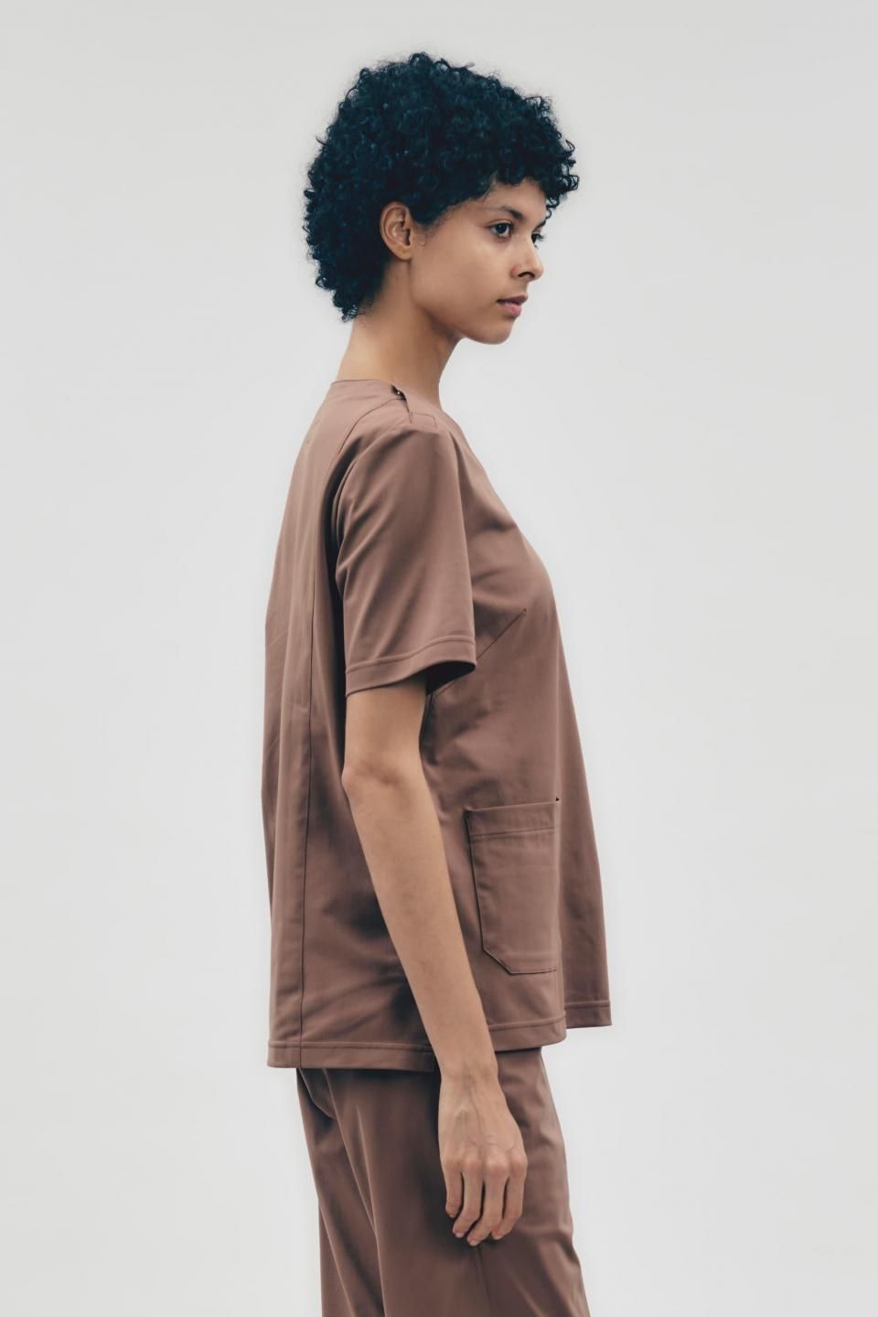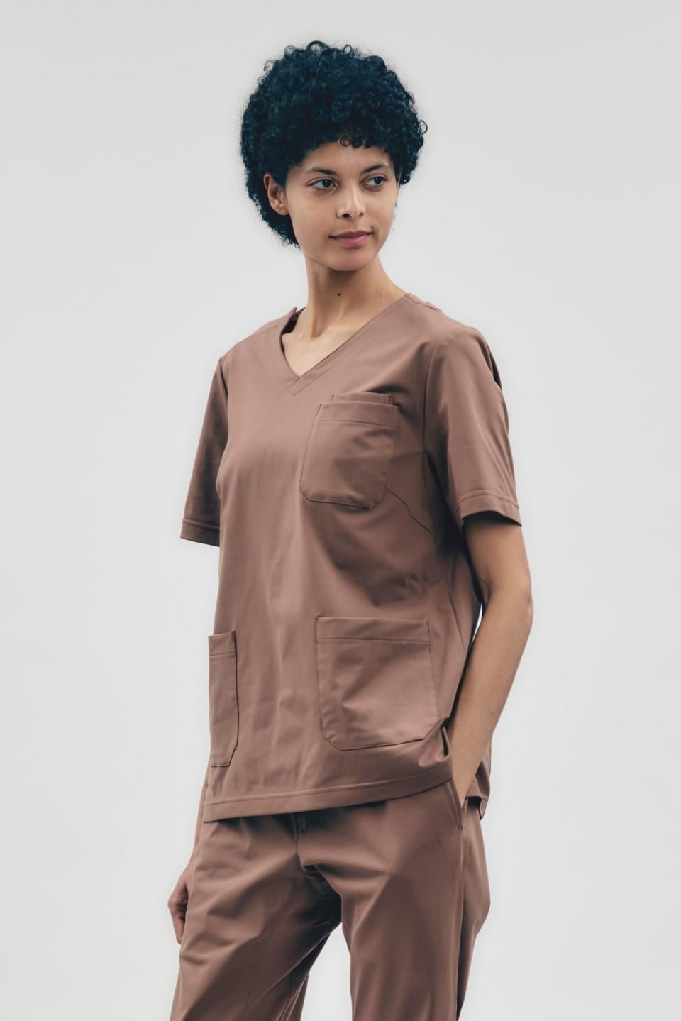 SOLOTEX使用ハイテンションニットスクラブトップ ブラウンWOMEN
