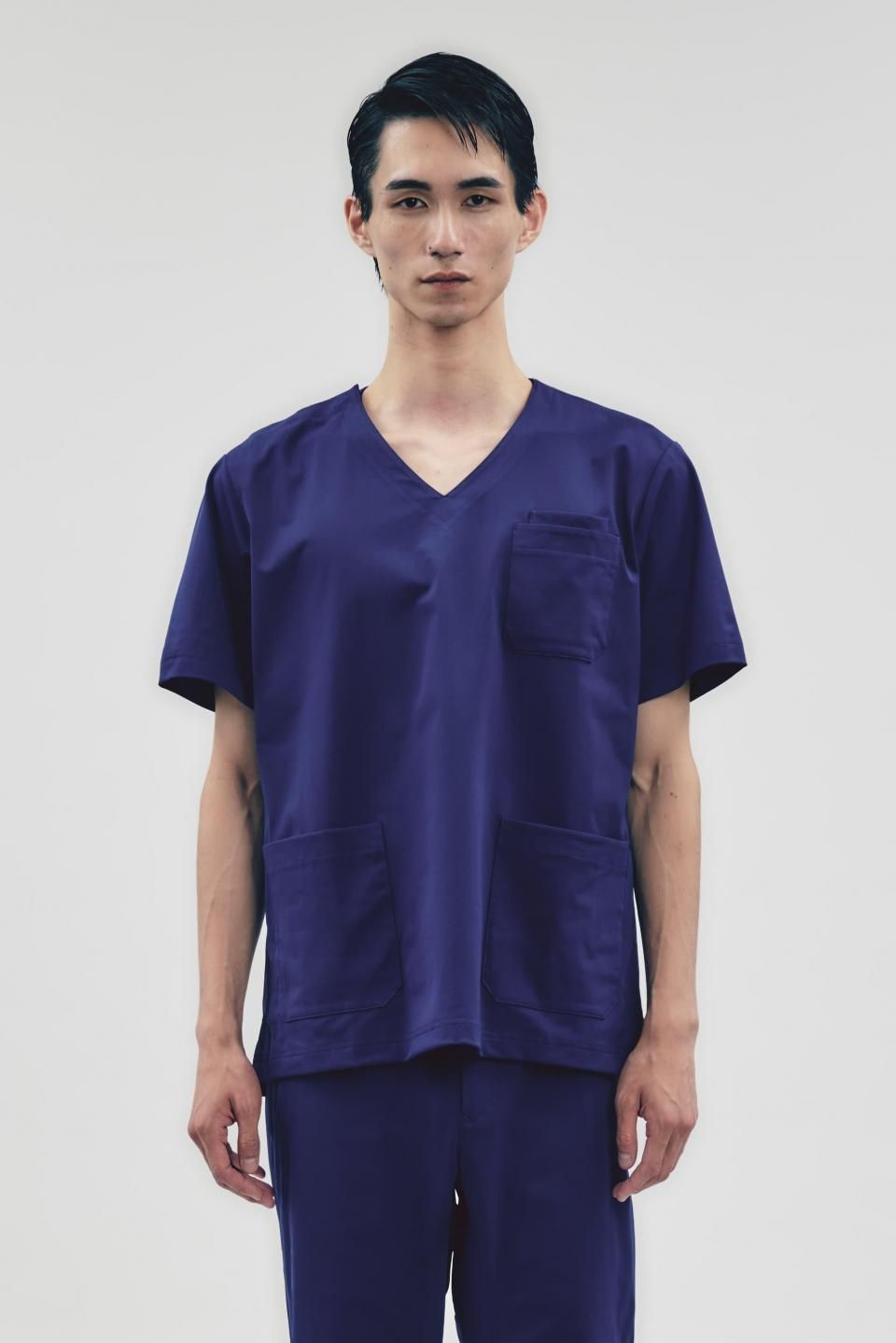 SOLOTEX使用ハイテンションニットスクラブトップ ブルー MEN