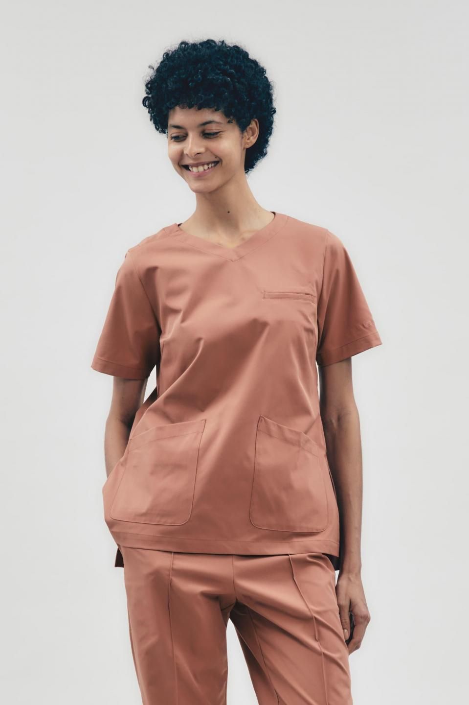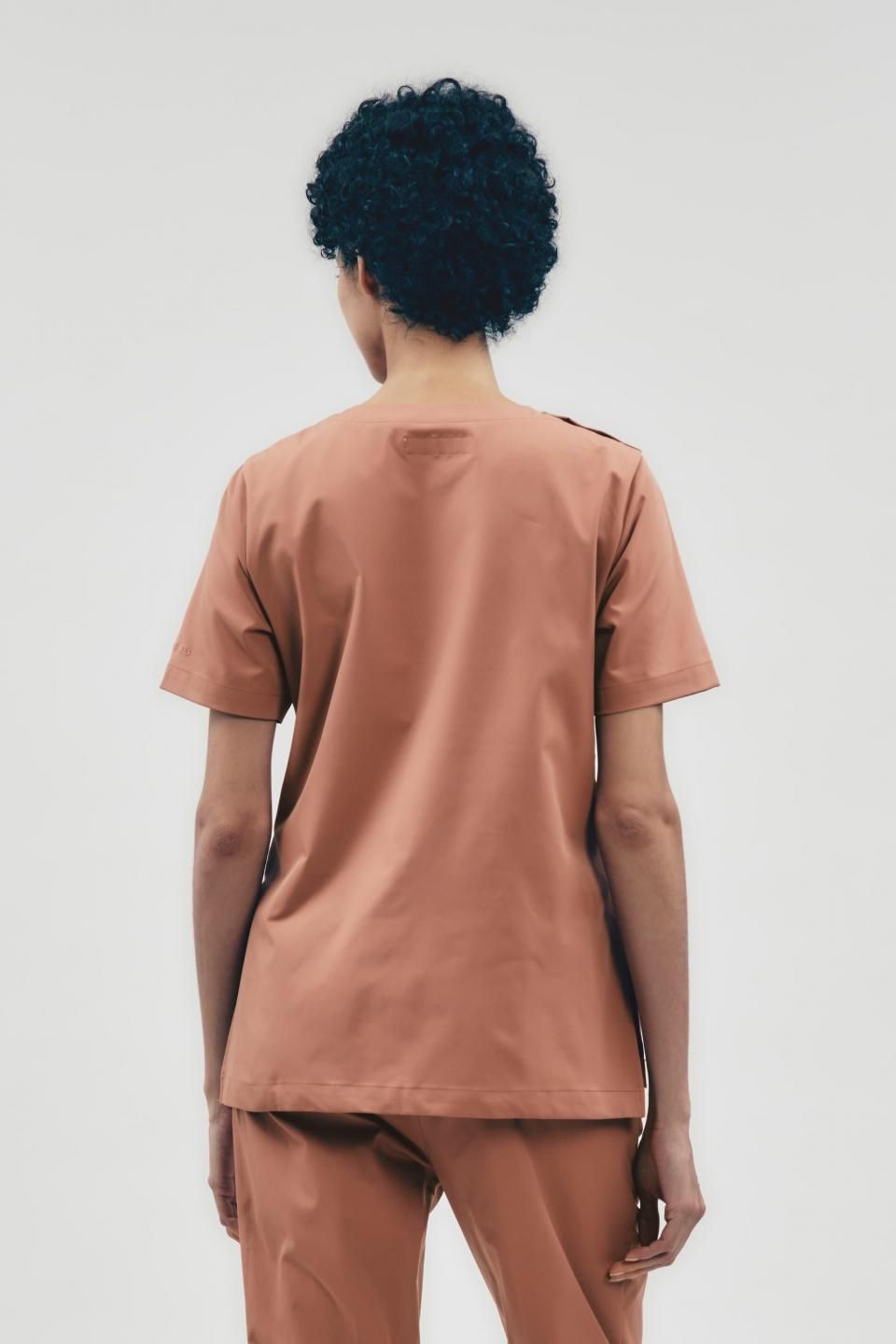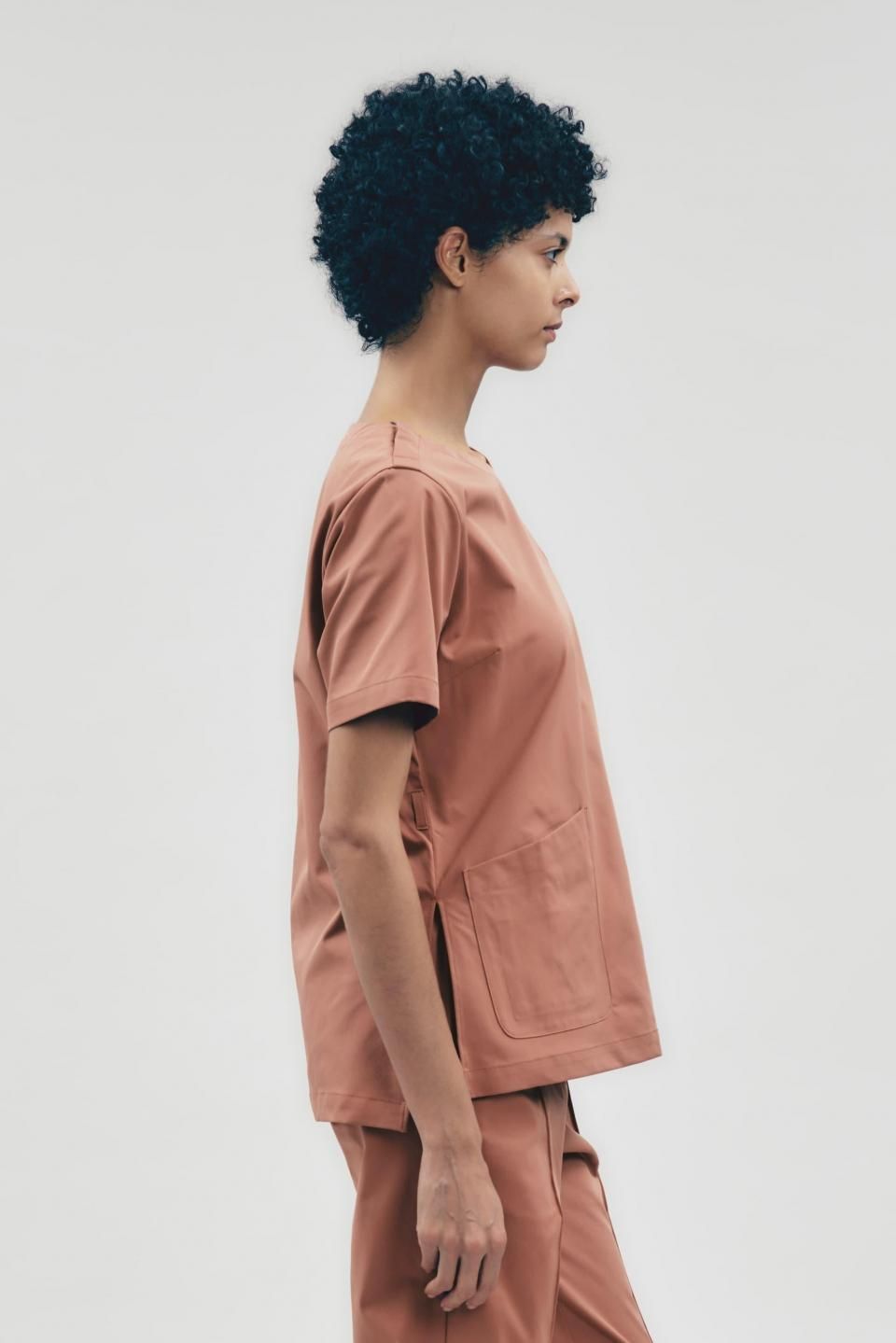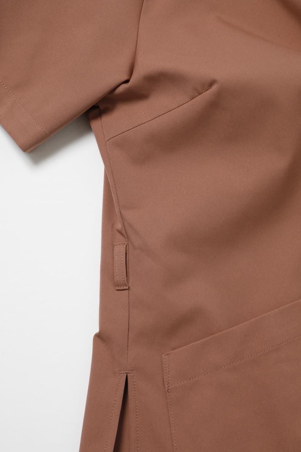 機能性やディテールをアップデートしたウィメンズオリジナルのストレッチスクラブ。前屈した際に胸元の開きが気にならないように、従来のデザインよりコンパクト なカッティングにした首回り。ヒップが隠れる長さで気になる部分を隠しつつ、胸から下を程良くAラインにすることで スッキリとした印象を与えます。たくさんの小物を持ち歩けるように、二重ポケットやストラップループといった機能面も充実させました。