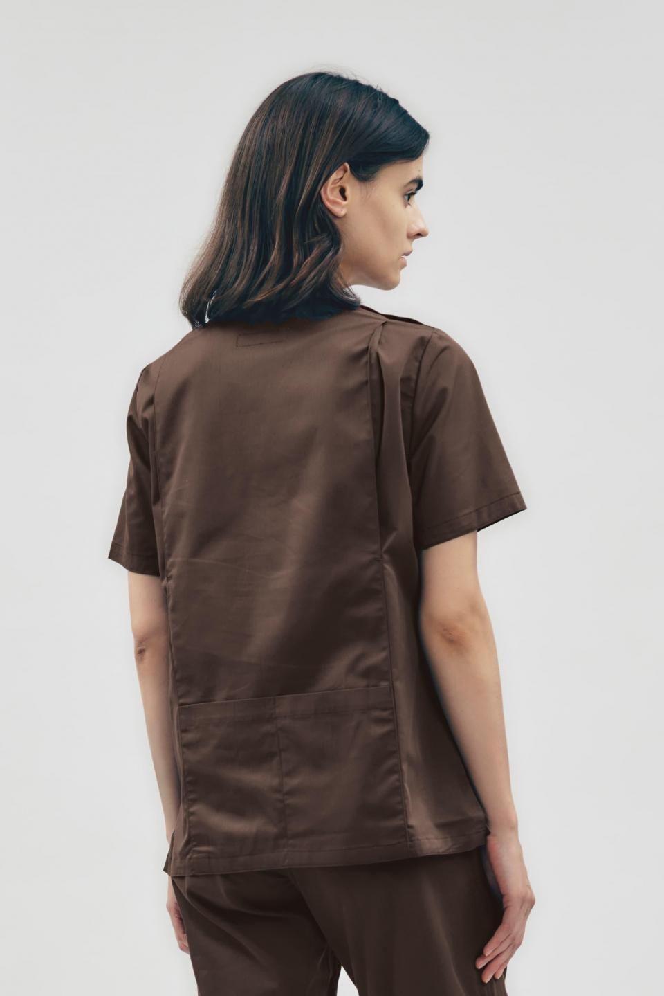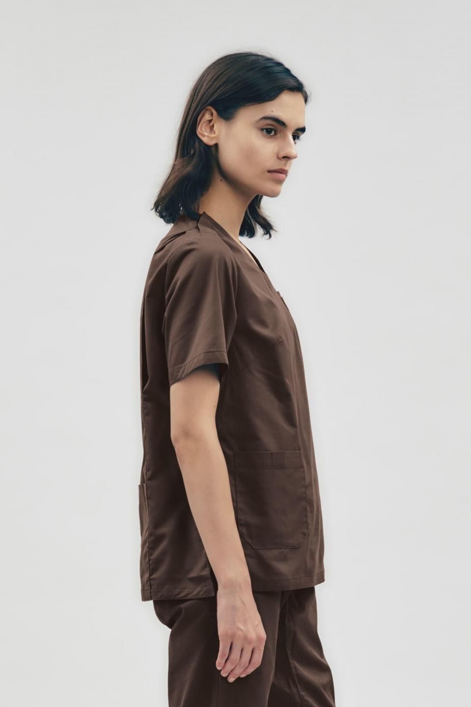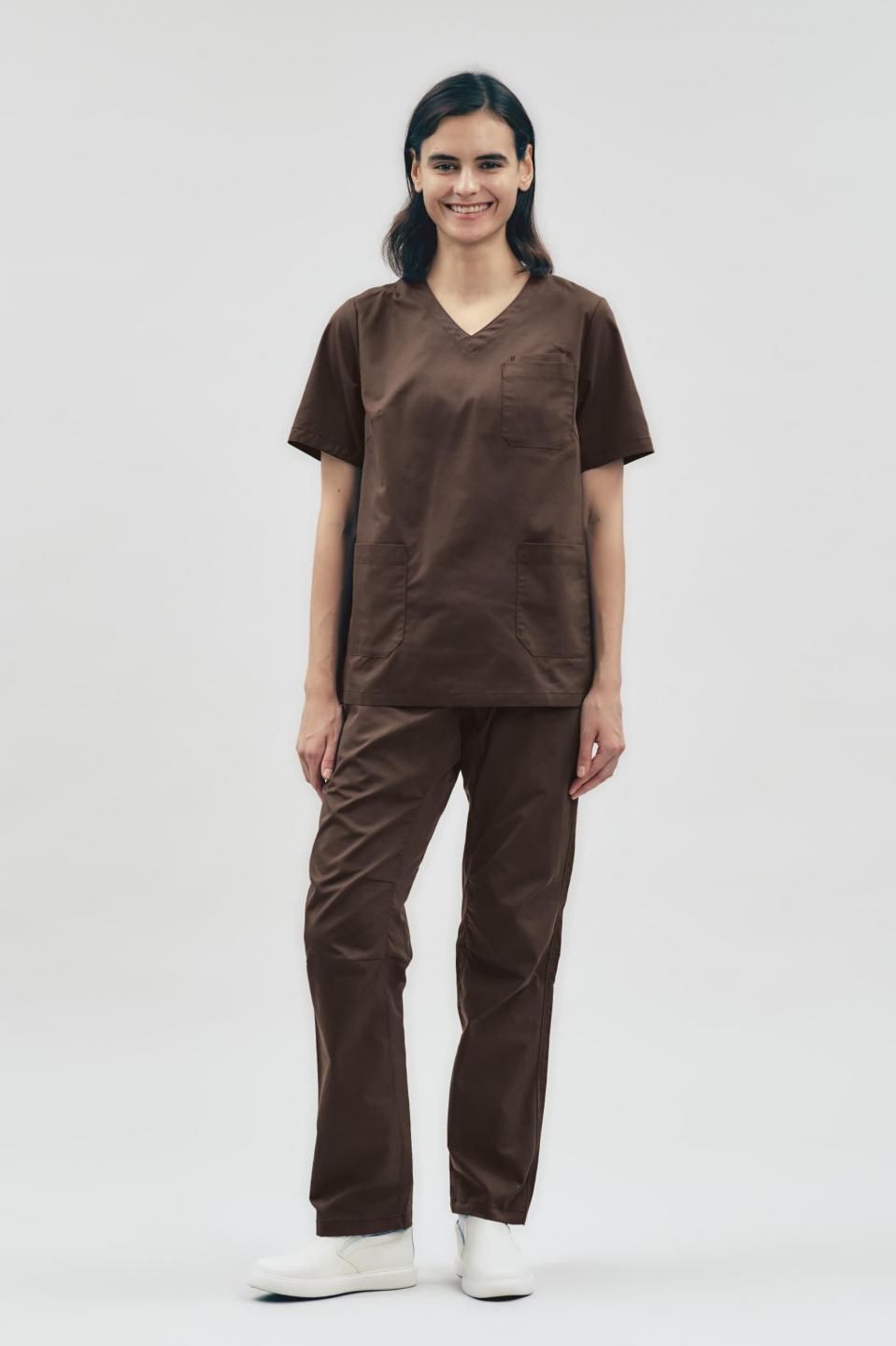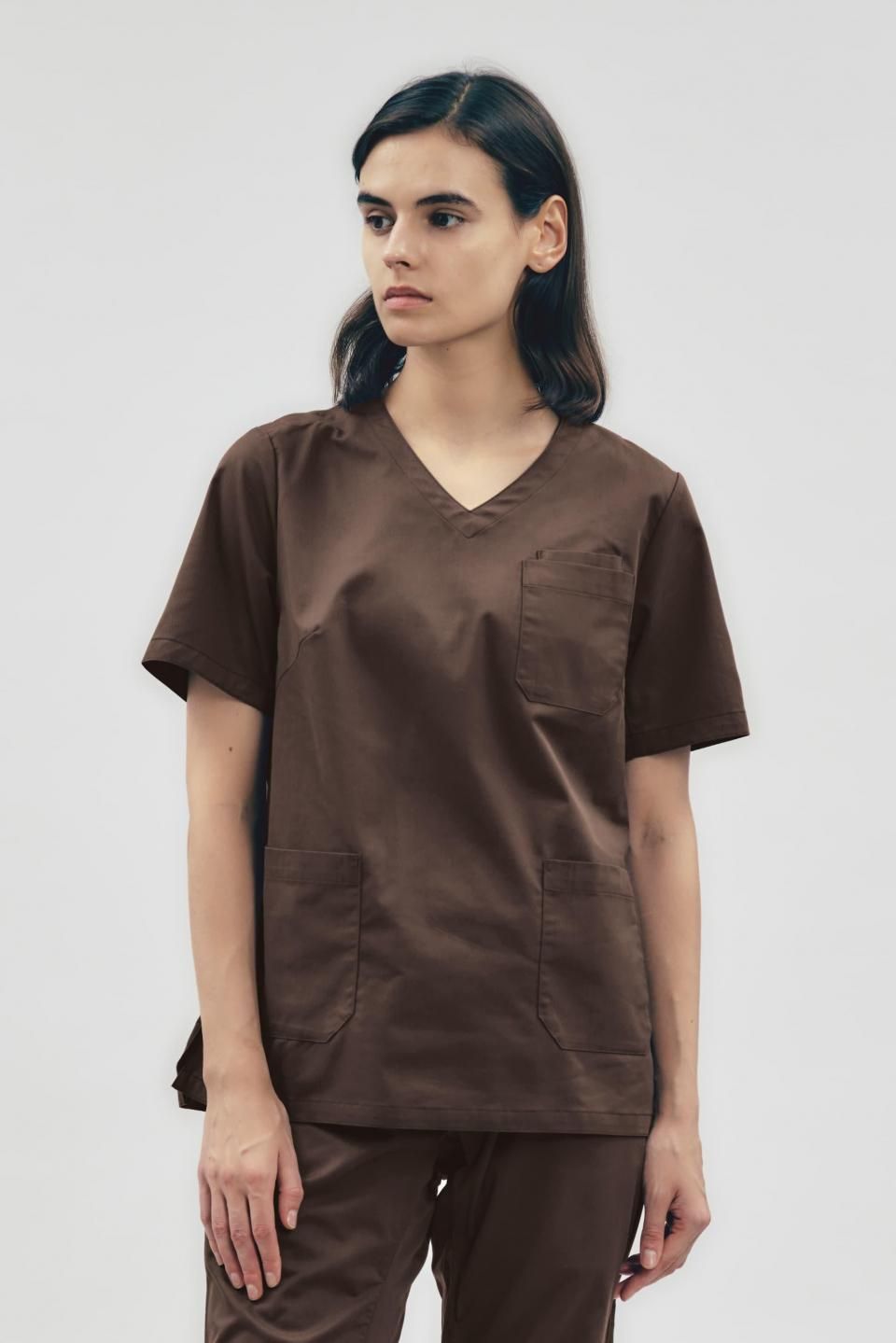 3Dアクション スクラブトップ ブラウン WOMEN