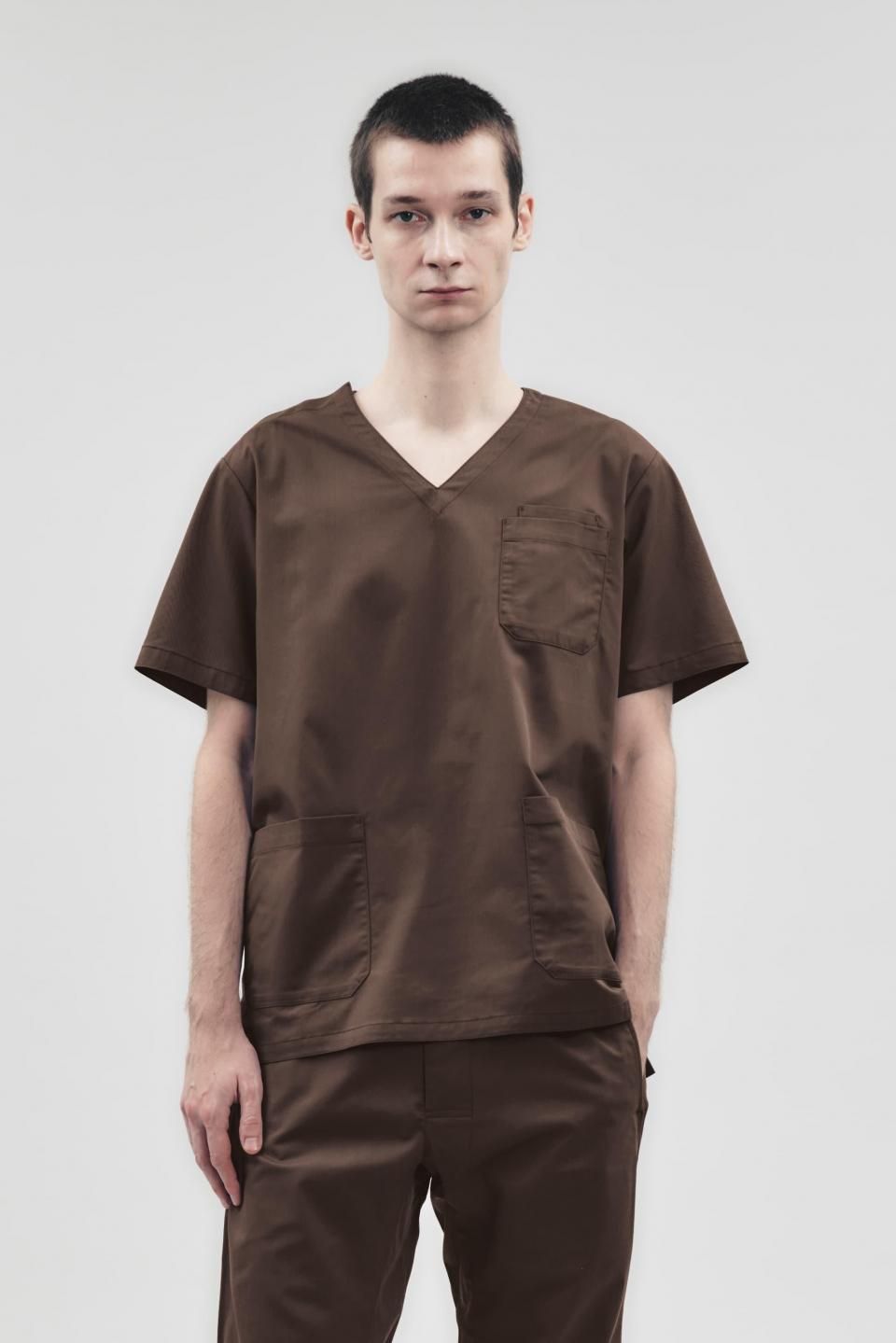 3Dアクションスクラブトップ ブラウン MEN