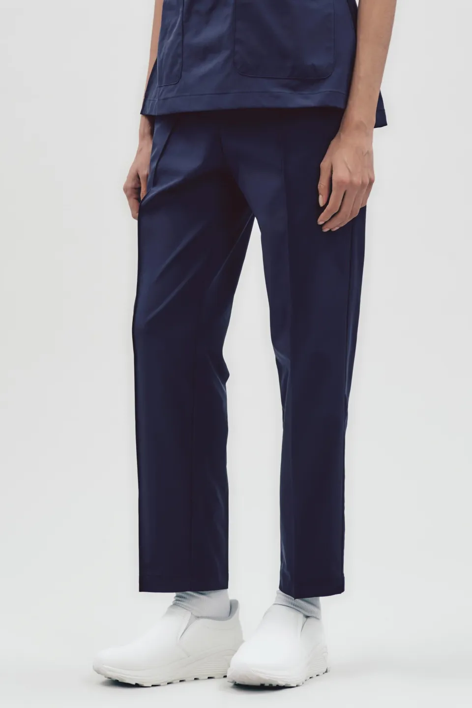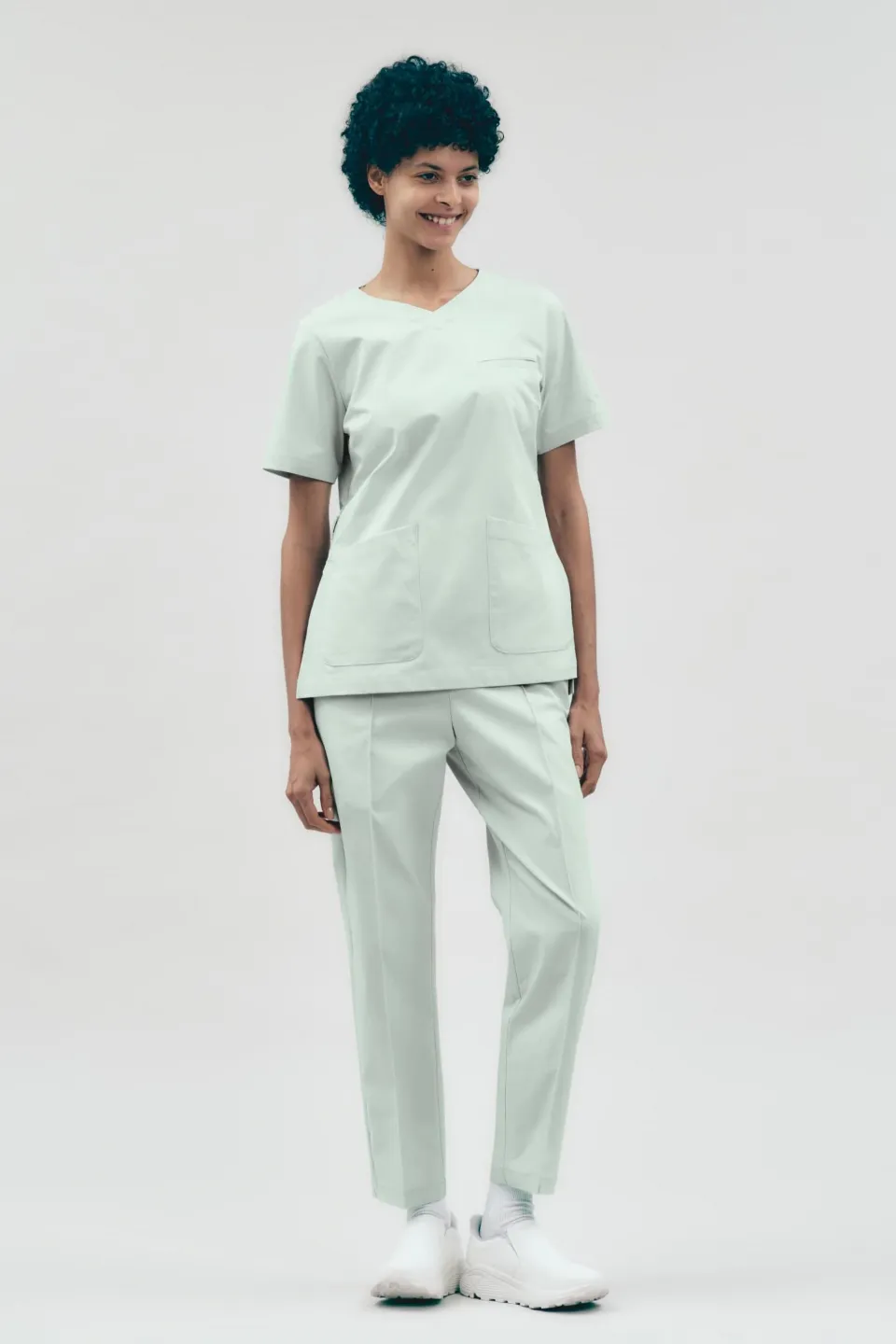 ボディラインがより美しく見えるようにタイトなパターンながらも、 ストレッチ性の高い生地を採用し快適な着心地を実現しました。 たくさんの小物を持ち歩く看護師をサポートすべく、 二重ポケットやストラップループといった機能面を従来品より拡充。 パンツは脚が綺麗に見えるセンタープレス入りです。